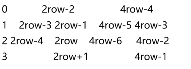 第一行的数是:0,2row-2,4row-4;