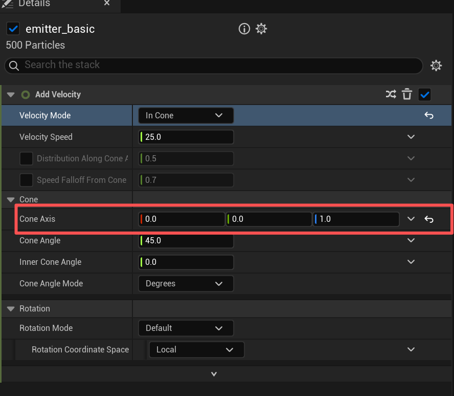 作用:展示发射器的关键信息摘要,比如发射器是否启用、粒子生成速率、粒子平均生命周期、当前活跃粒子数等。