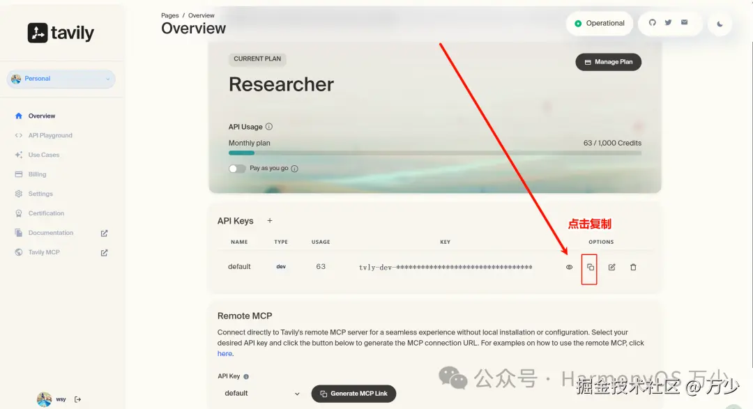 然后获取你的专属的key。