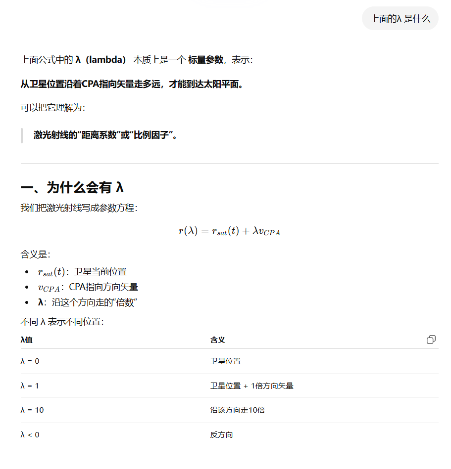 lambda = -(n'*r_sat) / (n'*v_laser);