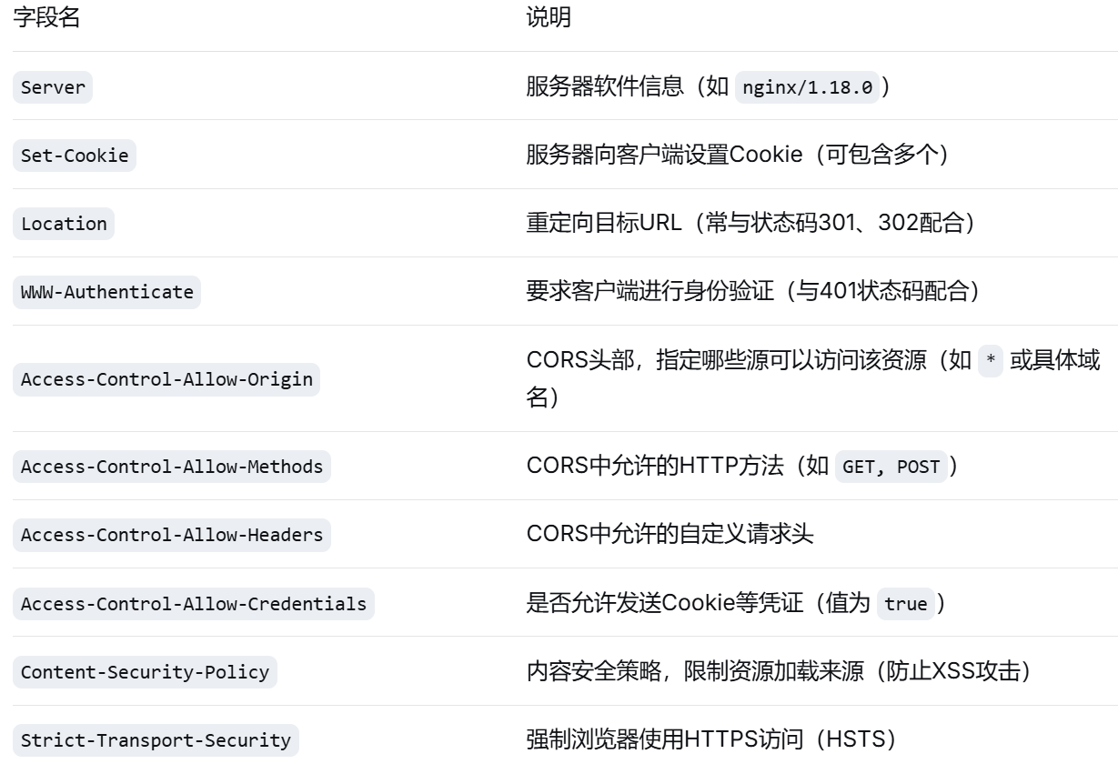 服务器返回给客户端的头部,包含关于响应的额外信息。