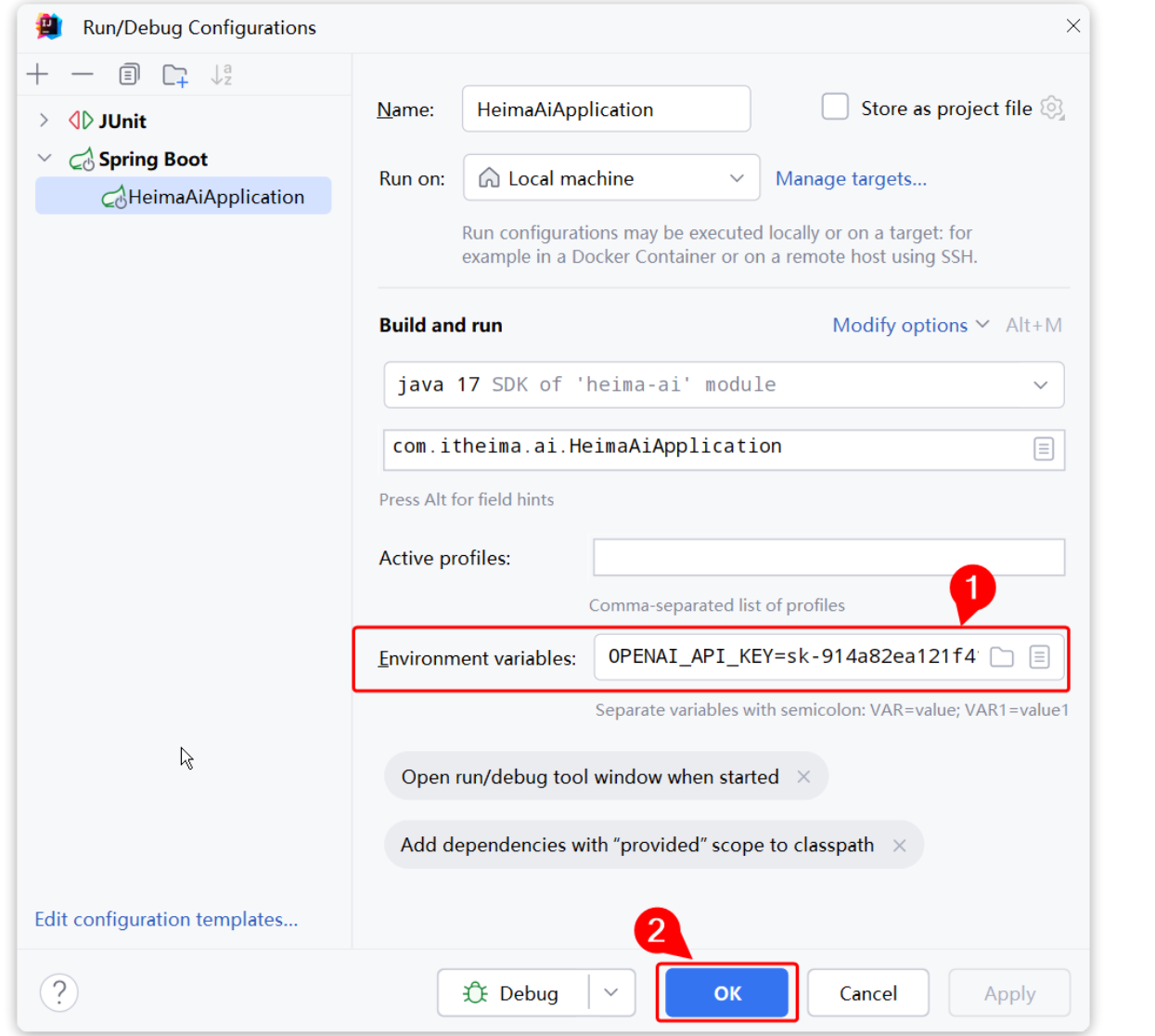 修改application.yaml文件,添加OpenAI的模型参数:
