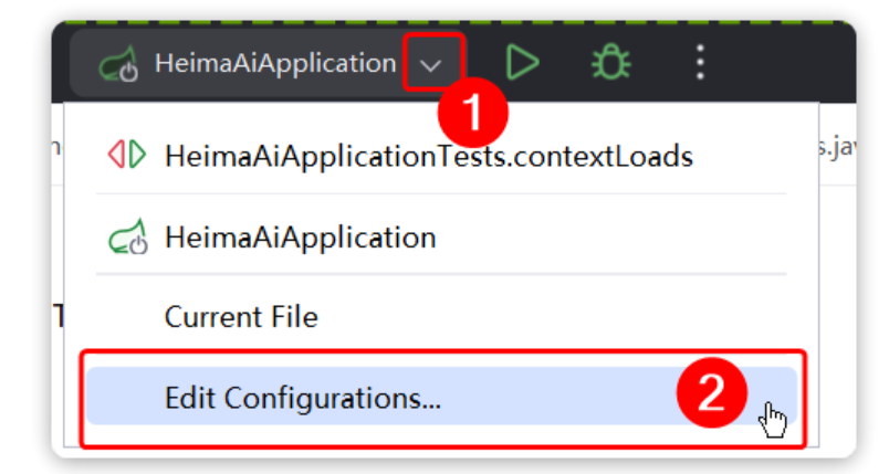 首先,点击启动项下拉箭头,然后点击Edit Configurations: