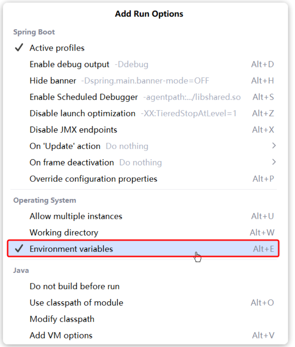 大家需要可以在启动项中配置环境变量。