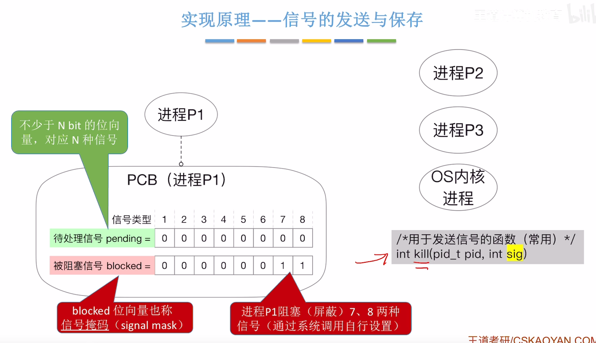 SIGINT、SIGKILL),进程注册处理函数。