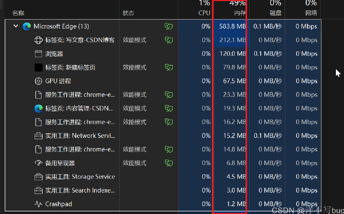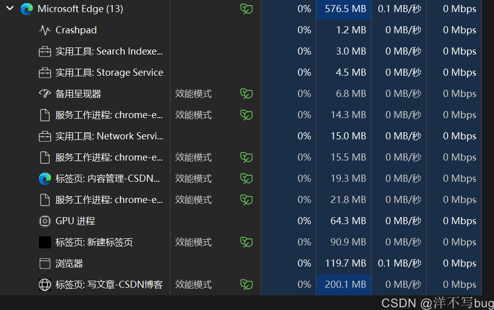 在这里,博主运行微软浏览器这个程序,启动了13个进程(如下图)