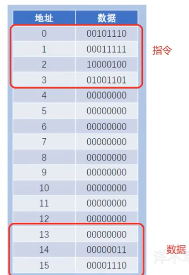 下图在上篇博客中有提到过,0123地址处里面存储的是指令,13,14,15地址处存储的是纯数据