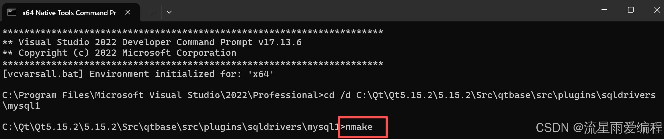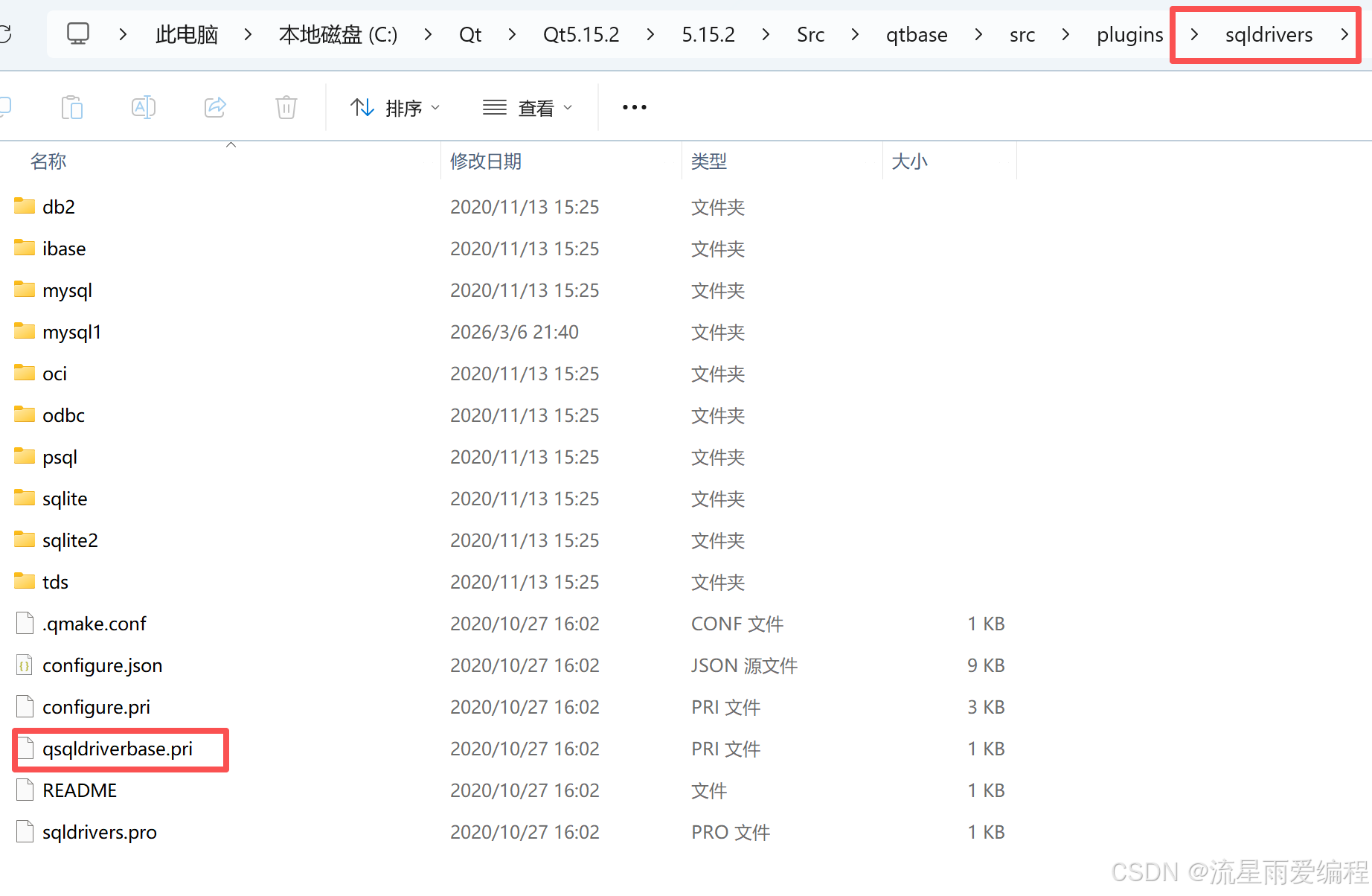 1.切换到Qt的mysql驱动源码目录(以Qt5.15.2为例):