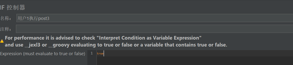 可以添加变量ifrun------true( 第一种情况,直接写一个变量值${ifrun})