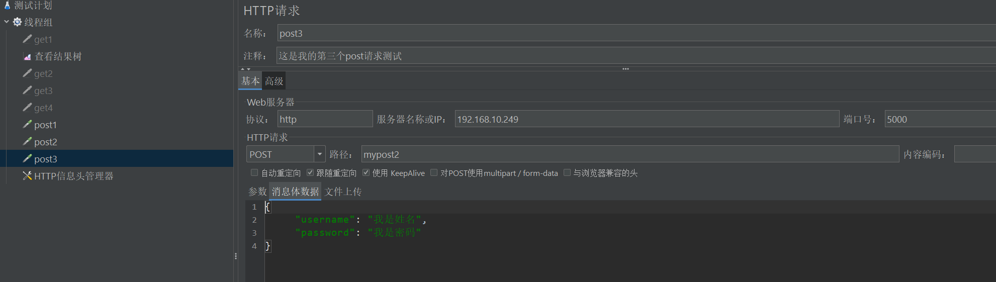 3、使用JMeter发送post请求