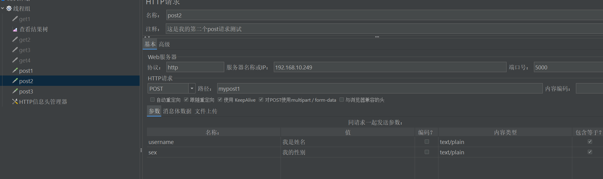 - 勾选"对POST使用multipart/form-data"选项