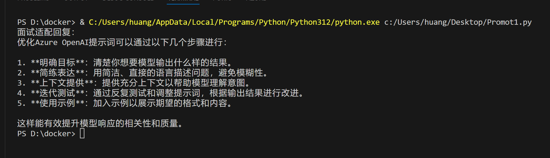 "content": "面试中,面试官问我'如何优化Azure OpenAI的提示词',我该怎么回答?"