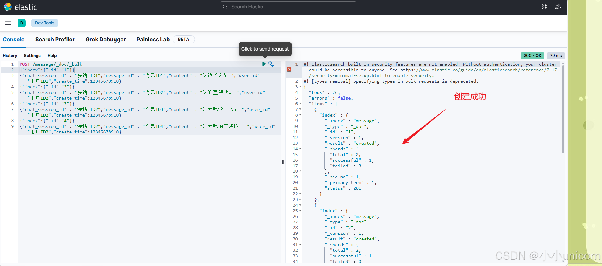 到这里我们的消息存储子服务已经全部测试完毕!!