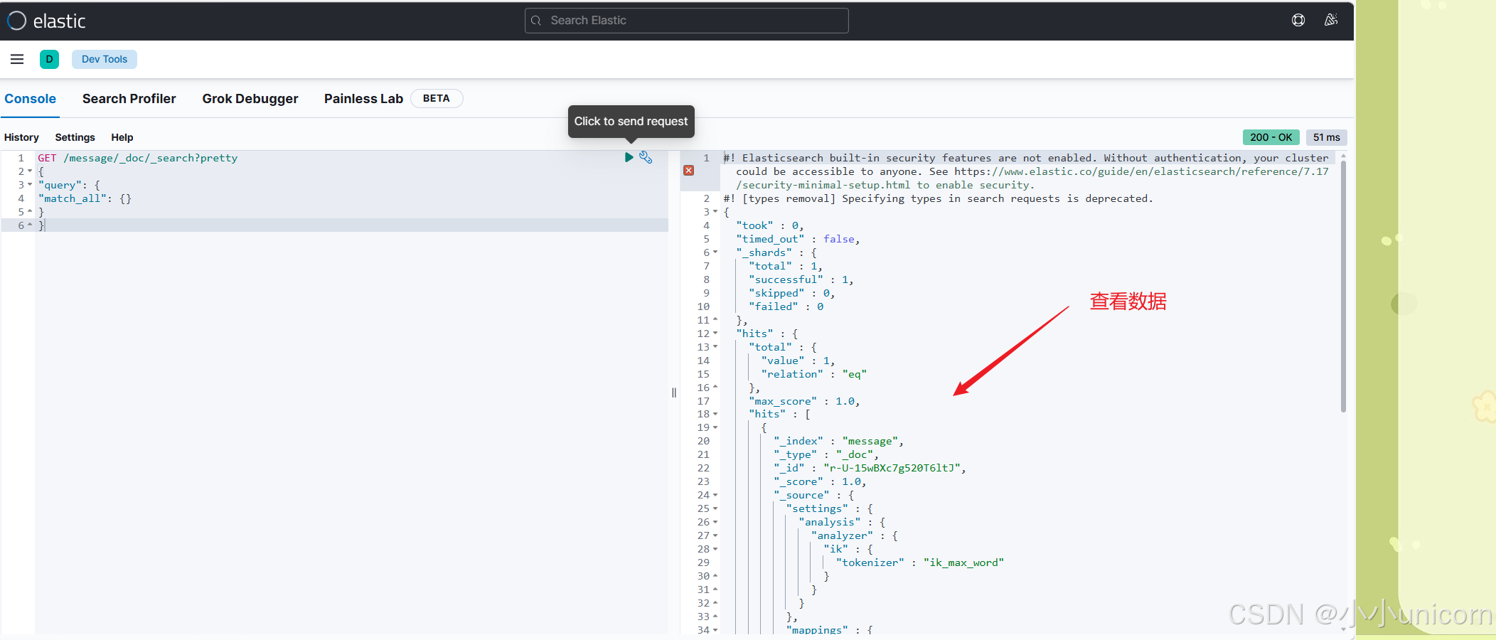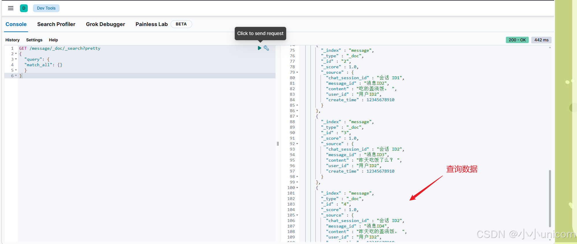 到这里我们的基本联调是没有问题的!也就是消息存储是没问题的,接下来测试消息的获取。