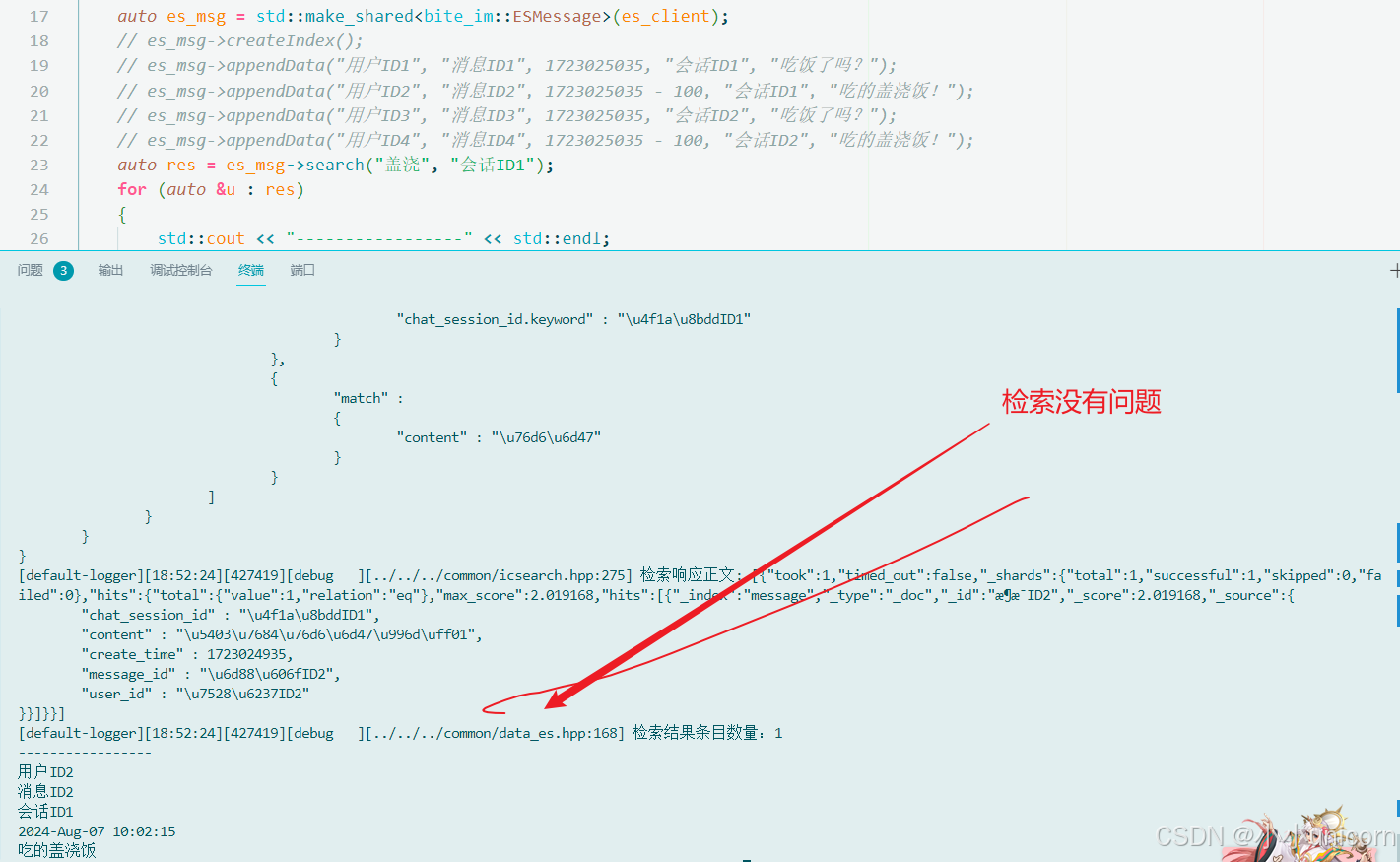 std::cout << "----------------------关键字搜索消息---------------------------\n";
