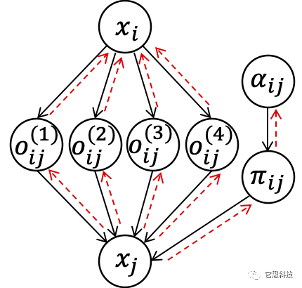 DARTS采用给每条边赋予权重,通过Softmax进行归一化,对各边进行加权求和。DARTS通过这种连续松弛(Continuous relaxation)使结构权重参与到前向计算中,并可通过反向梯度传播更新权重参数。DARTS存在两个显著的问题: