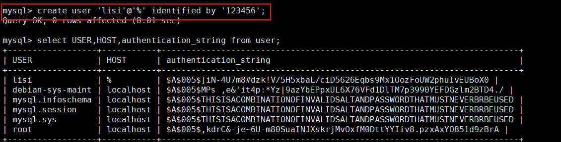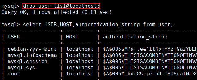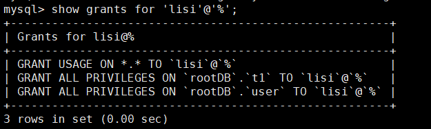rootDB.user:lisi 使用权限的库和表,这里只能使用 user 表,改成 * 代表可以使用该数据库 rootDB 中所有的表;