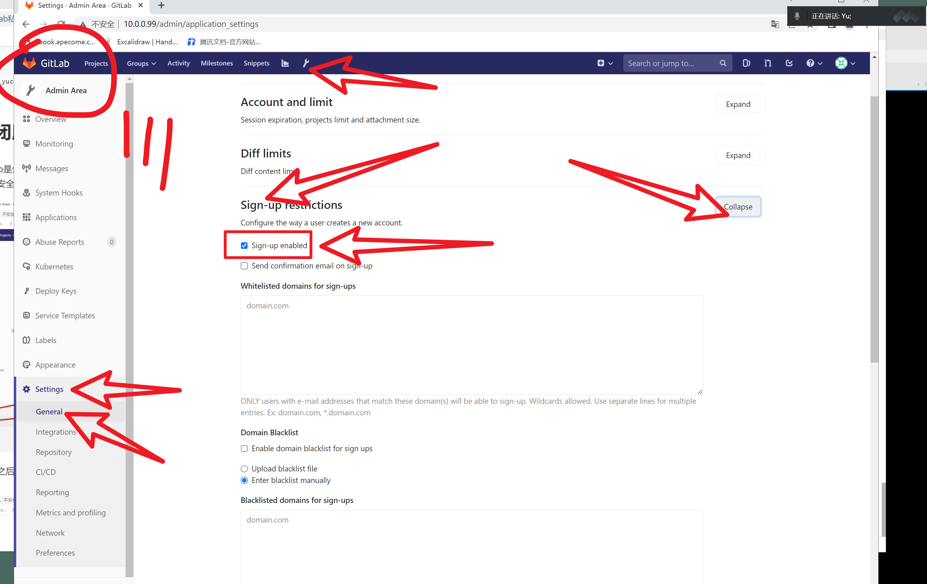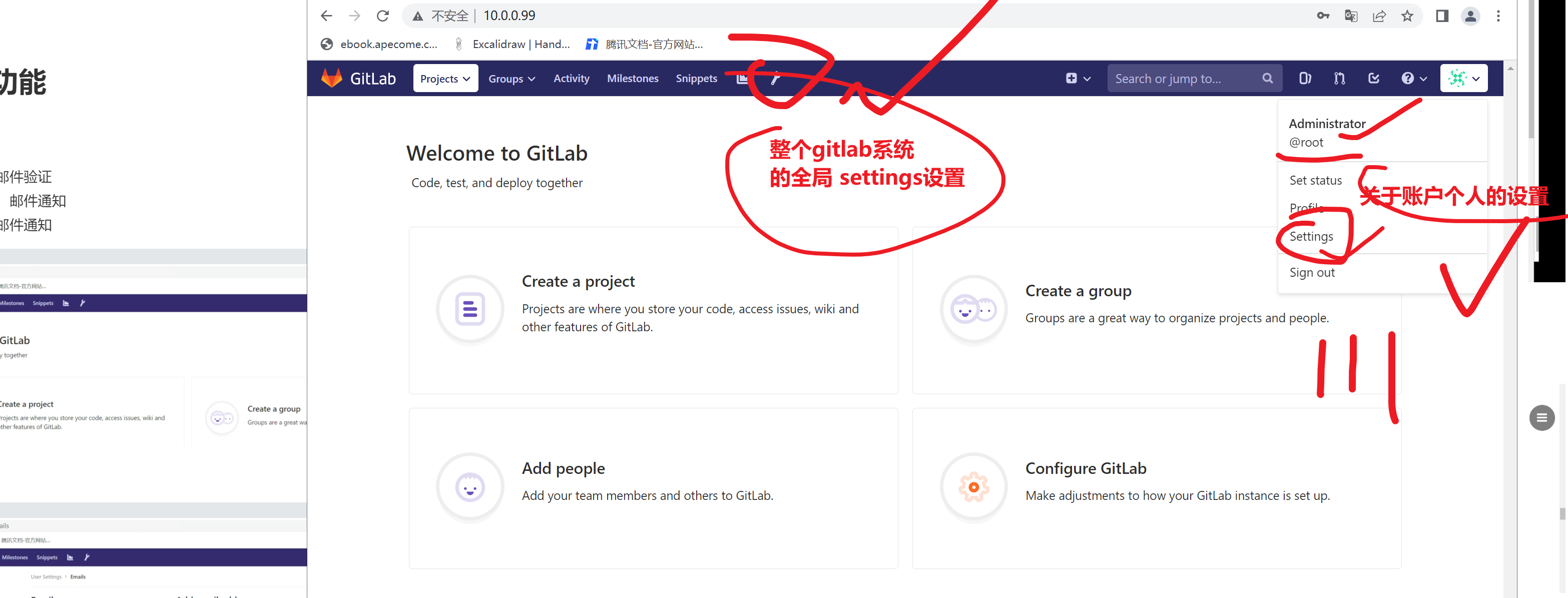 确认可以发邮件之后,可以使用gitlab图形化配置了。