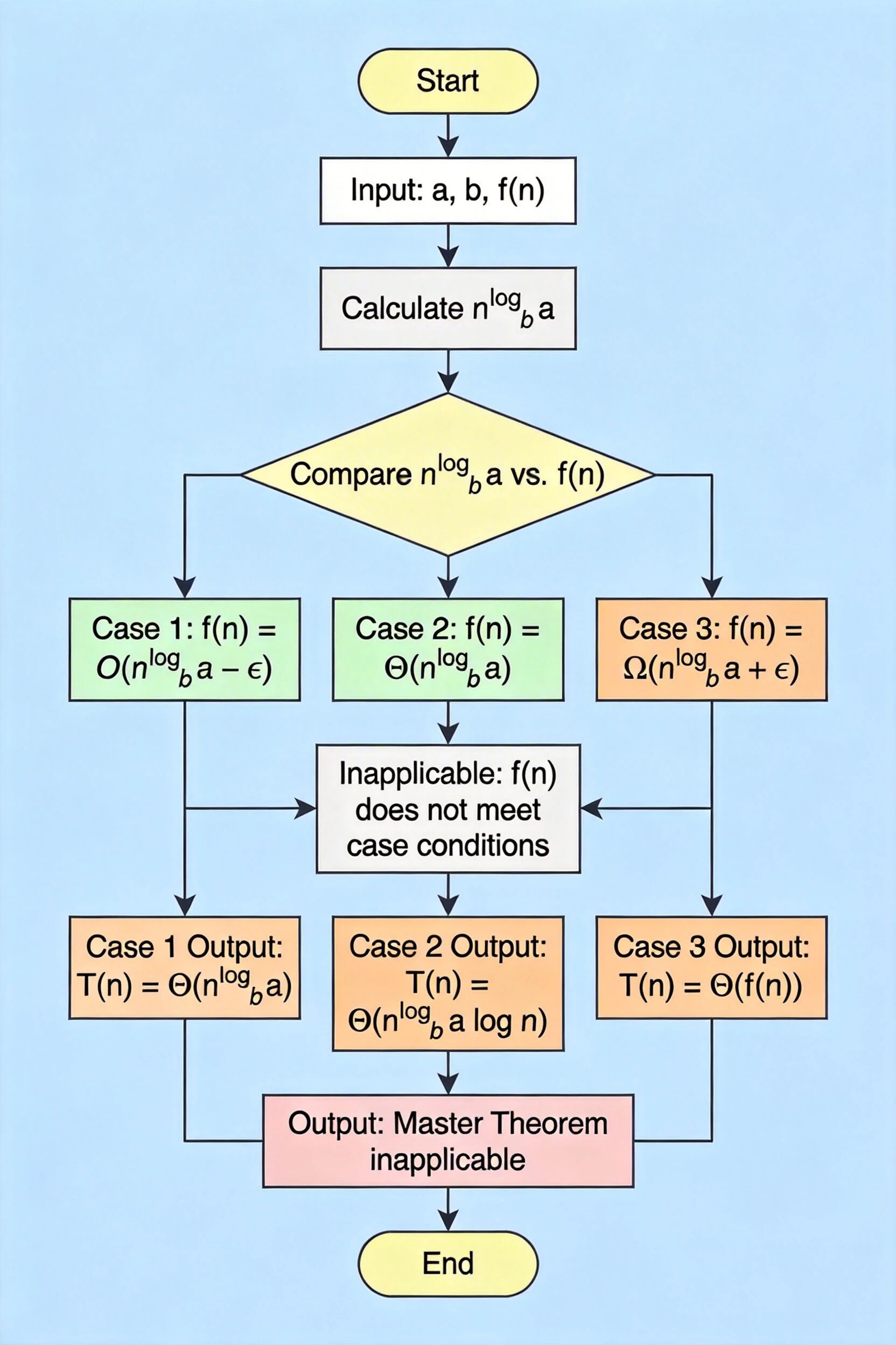 通过比较 f (n) 与 n^log_b a 的增长率,可将递归式分为三类,分别对应不同的复杂度结果: