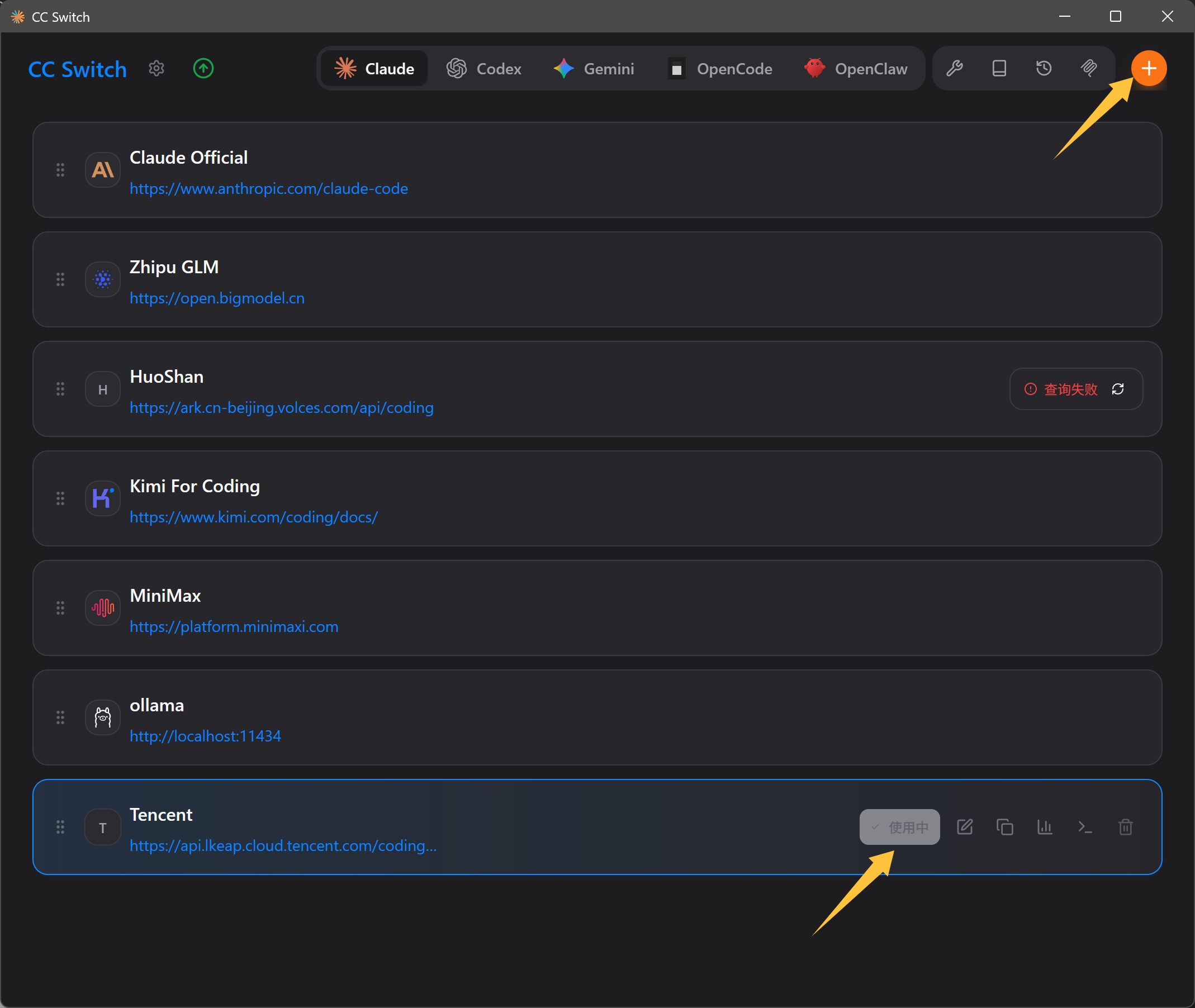 包括:火山引擎,阿里百炼,智谱,Kimi,MiniMax,腾讯云。