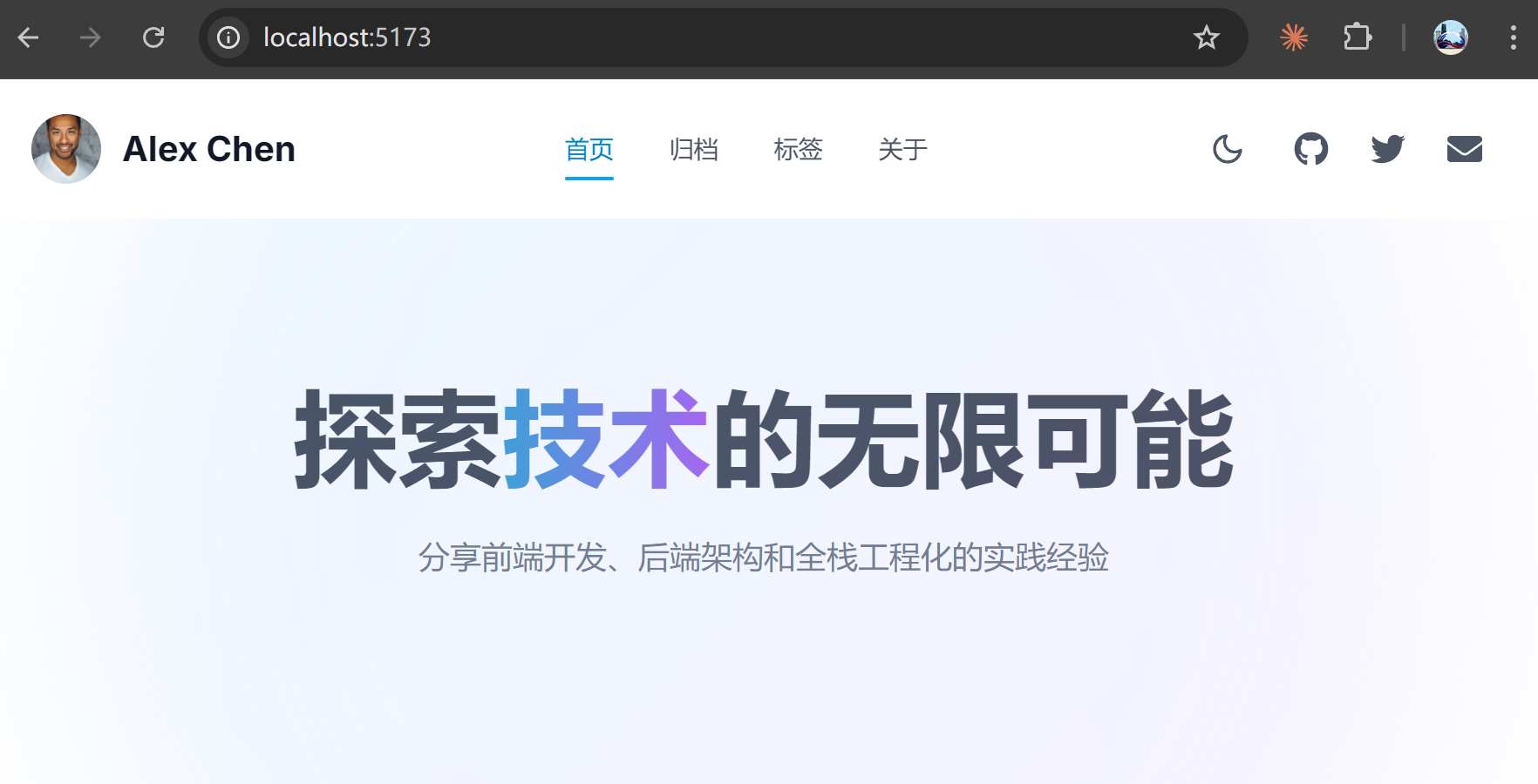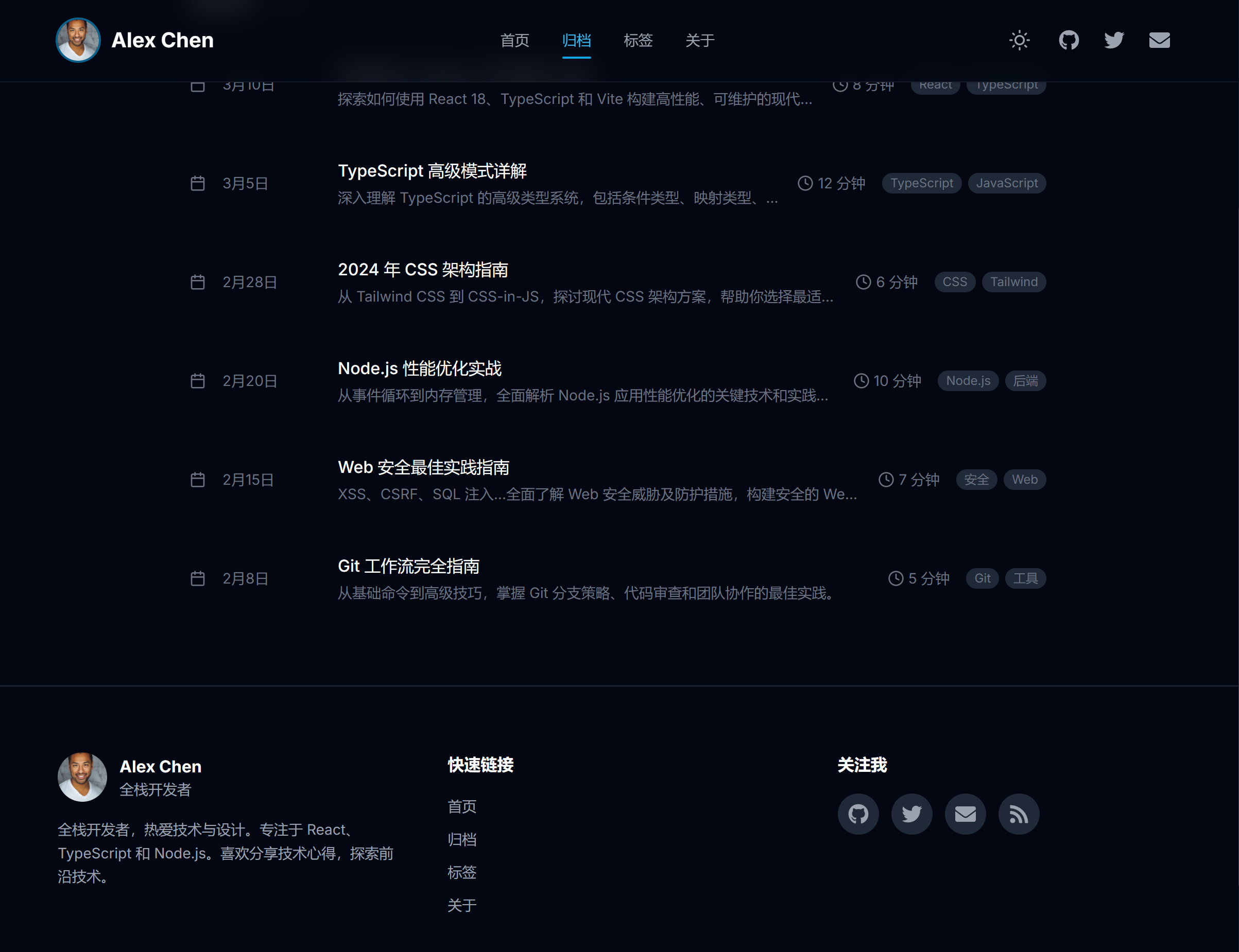 先用简单的指令做个测试:"用 React 开发个人博客,要求功能完善,设计美观,专业级 UI 和 UX。"