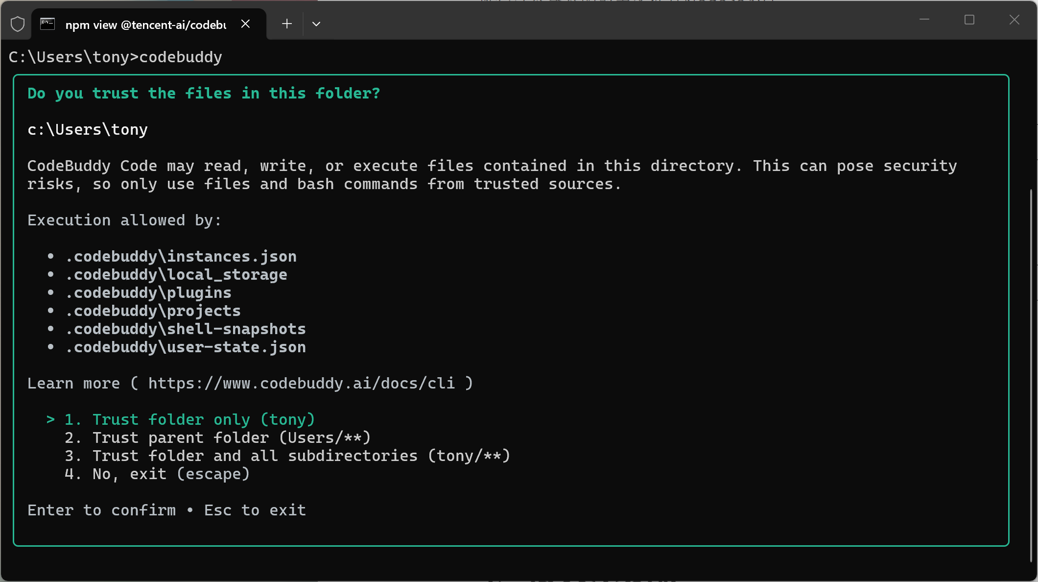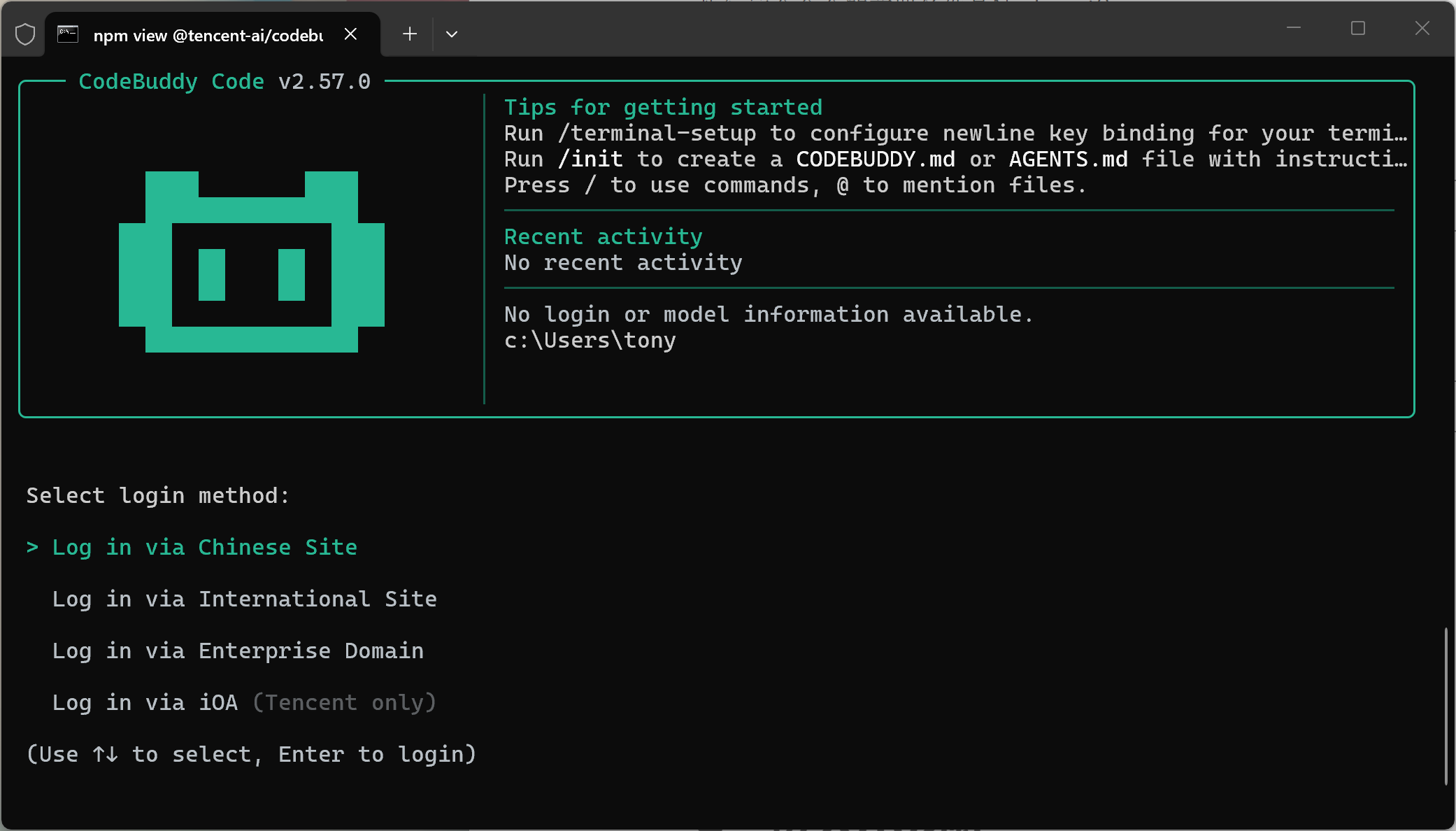 npm install -g @tencent-ai/codebuddy-code