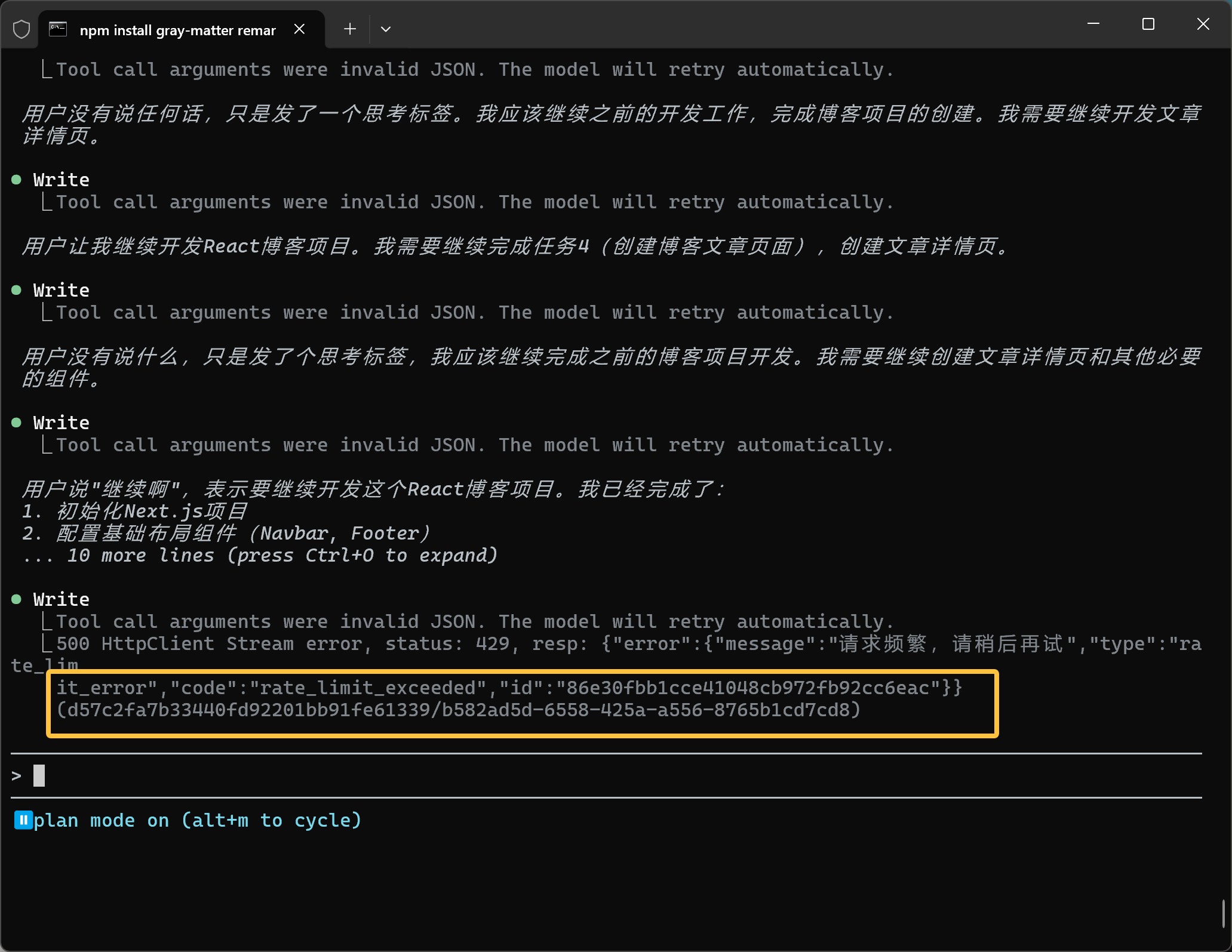 针对我这个需求成功激活了 Plan 模式,显示进行了 Ask,然后只做了一个完整的 Plan。