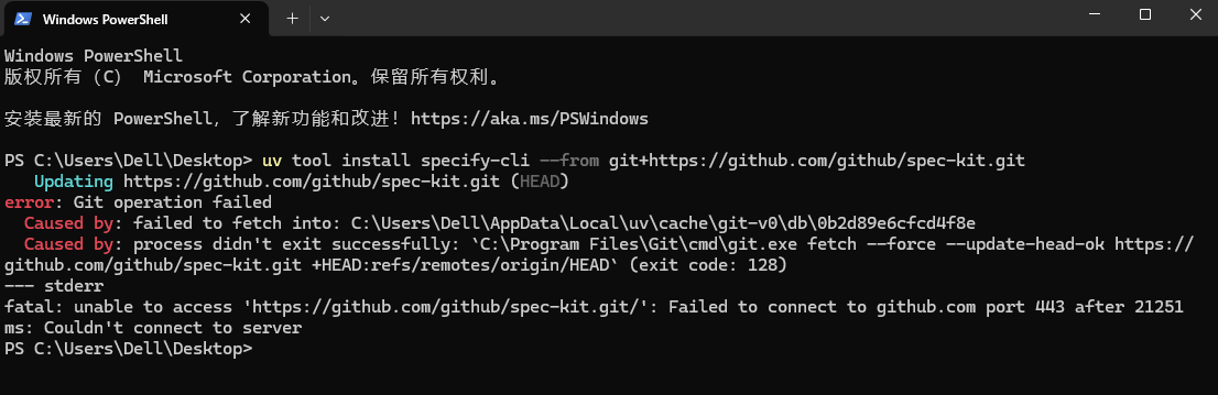 spec-kit 的安装通过 uv 工具完成,在 powershell 执行以下命令:
