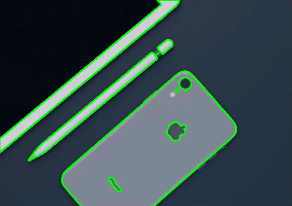 image_contours = cv2.drawContours(phone_new,[approx], contourIdx=-1, color=(0,255, 0), thickness=3)#cv2.imshow( winname: 'phone',phone)