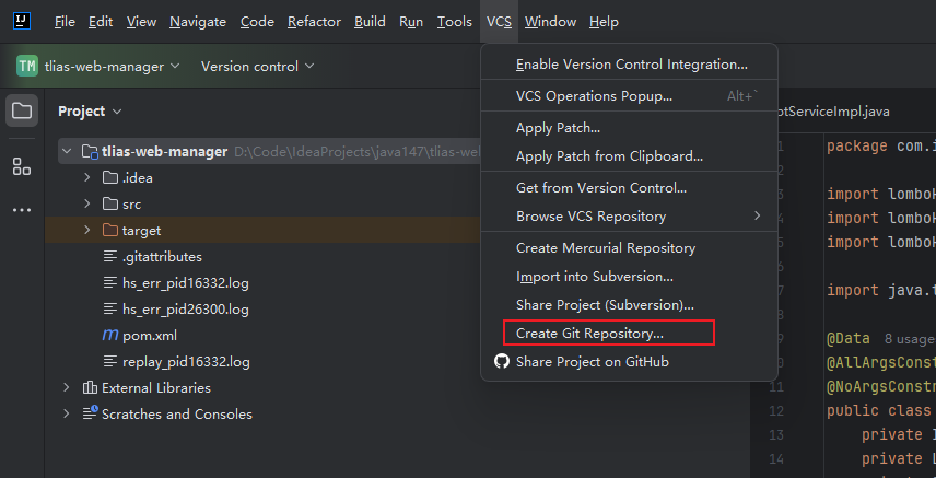 7、开发环境搭建-Git管理后端项目