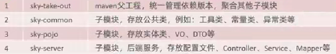 - sky-pojo子模块中存放的是一些entity、DTO\VO
