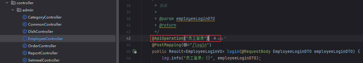 public Result<EmployeeLoginVO> login(@RequestBody EmployeeLoginDTO employeeLoginDTO) {