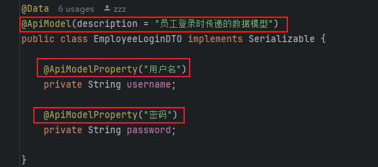 注意:需要引入@ApiModel所需要的包。