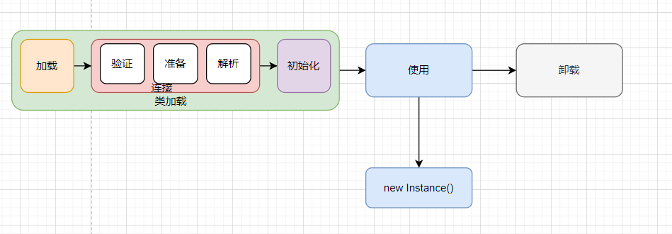 **类使用阶段:**就是在完成类加载之后会有代码段引用该类,可能是初始化该类的对象,或者反射获取该类的元数据