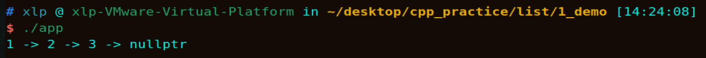 下面我们尝试用 C++ 创建一条简单的链表并打印,链表节点就是上面的标准定义,main函数如下: