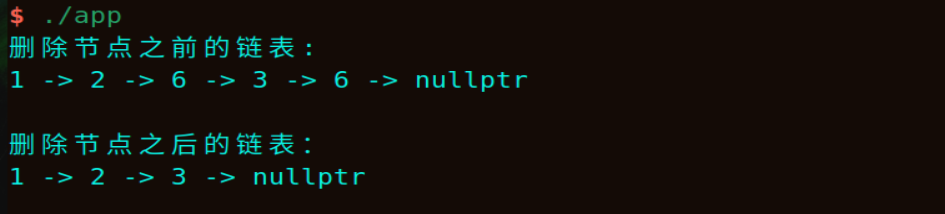 假设链表是:1 -> 2 -> 6 -> 3 -> 6,我们要删除所有值为 6 的节点。代码如下: