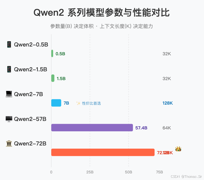 | Qwen2-0.5B/1.5B | 超轻量级,支持32K上下文 | 适用于资源受限的边缘设备,所有小模型均采用GQA和Tie Embedding以优化性能。 |