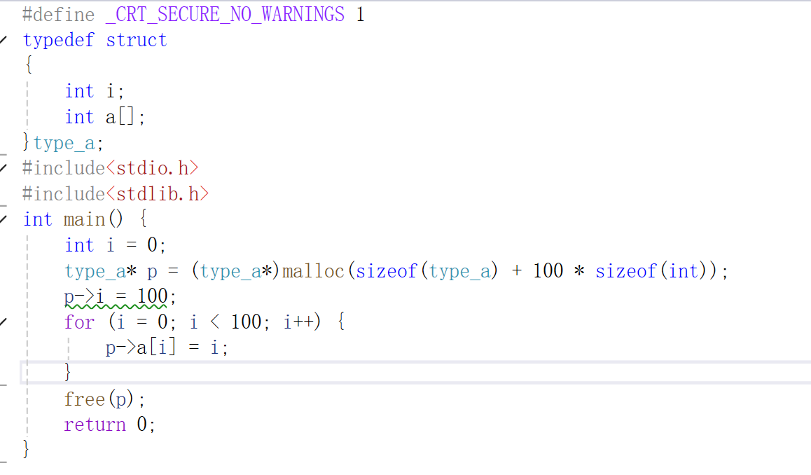 2.3.包含柔性数组成员的结构用malloc()函数进行内存的动态分配,并且分配的内存应该大于结构的大小,以适应柔性数组的预期大小