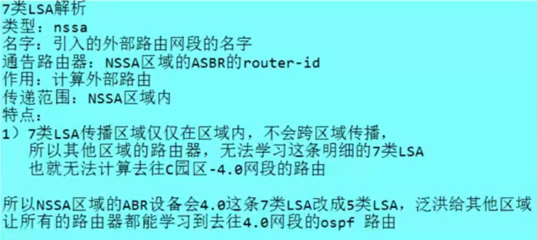 NSSA引入了一种新的LSA类型------7类LSA,它是理解NSSA的关键。
