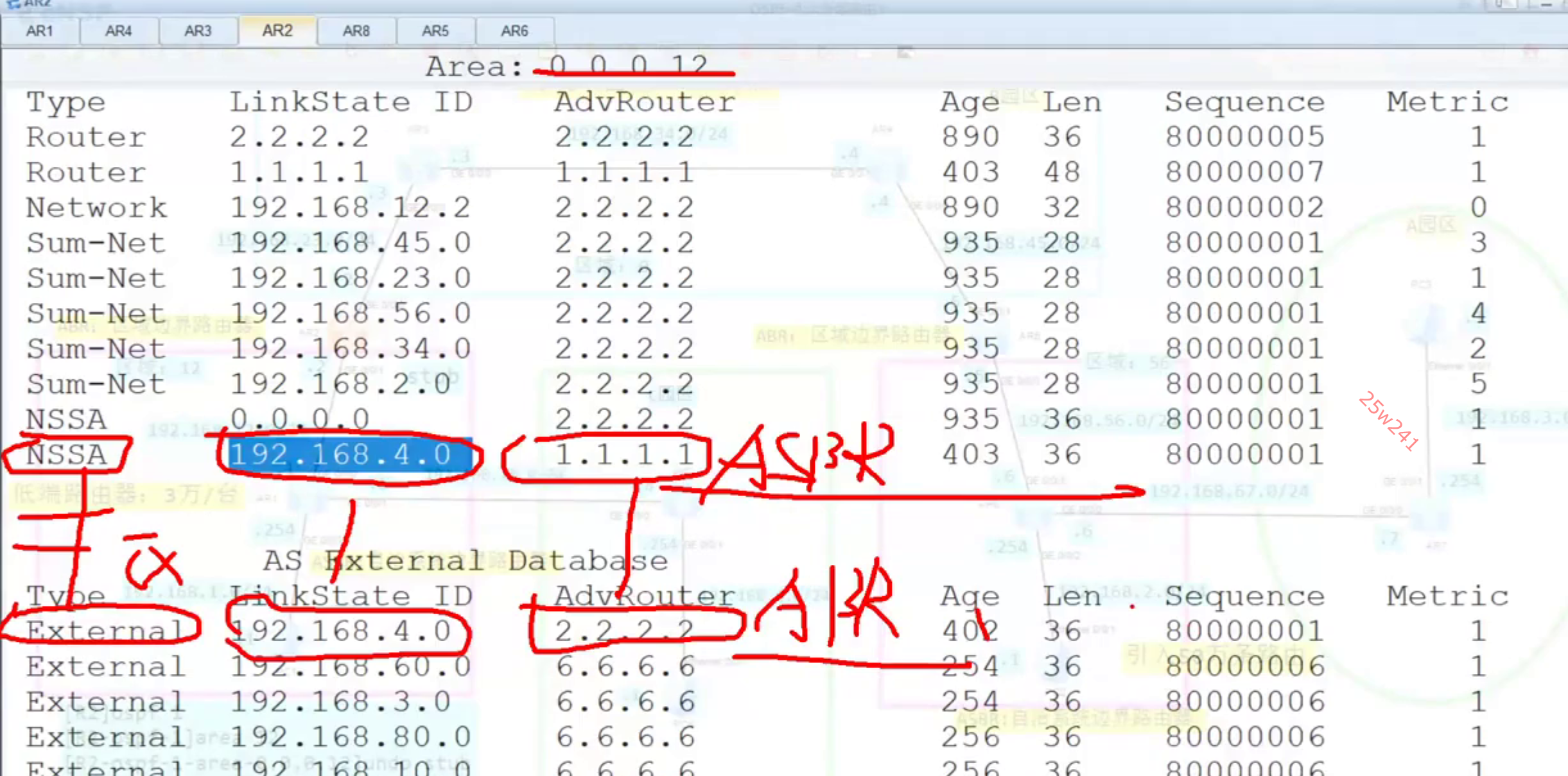 区域12里面没有五类LSA了。