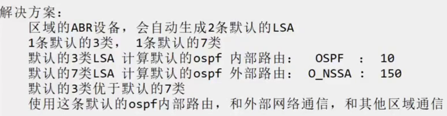 NSSA区域的ABR会自动产生一条-默认的7类的LSA(0.0.0.0)用于访问外部网络