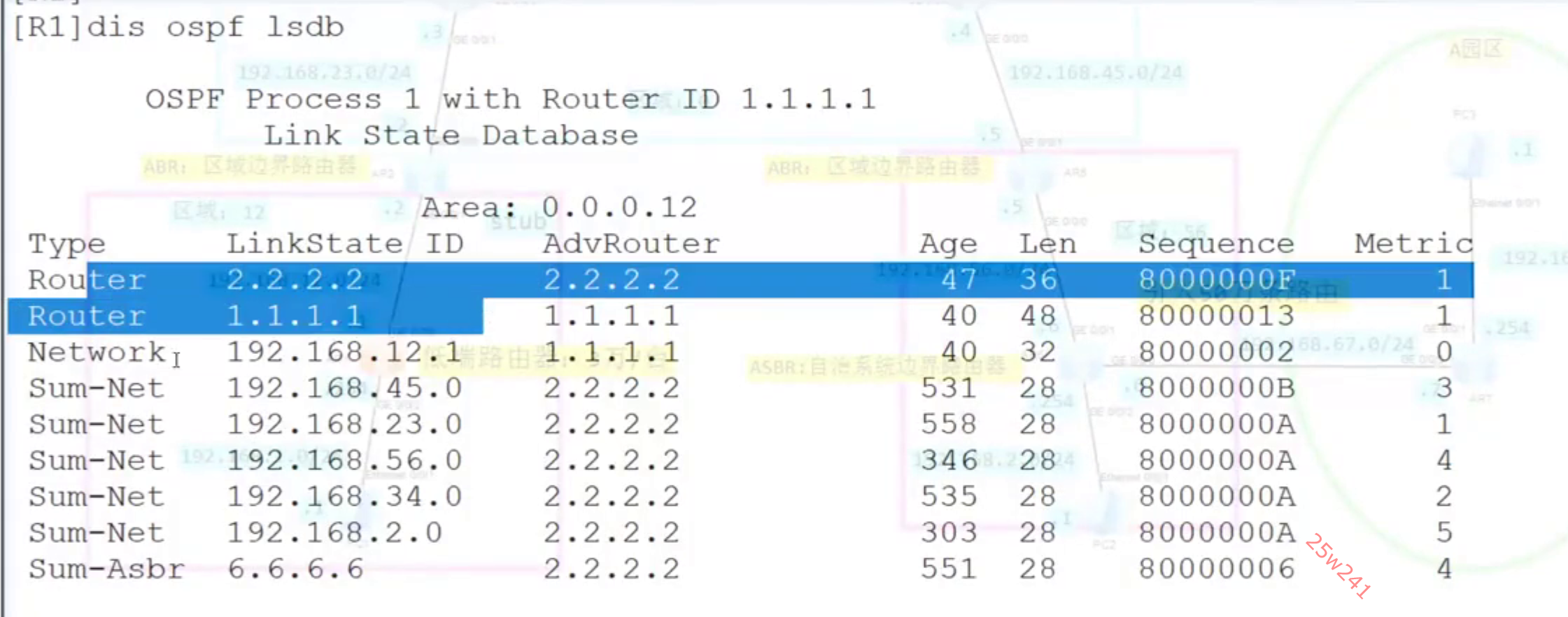 查看R1上LSDB数据库