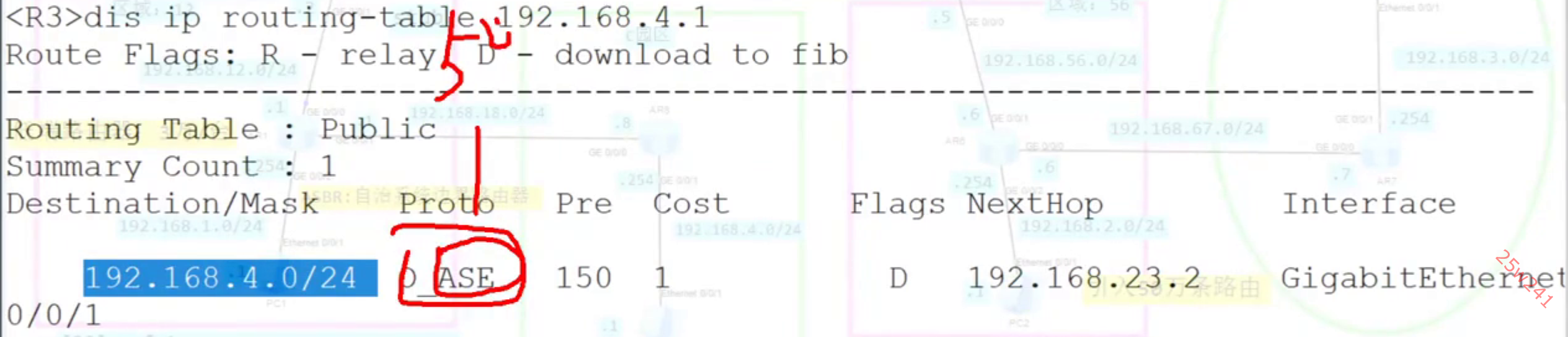 O_ASE 也表示外部路由,由5类的LSA计算出的外部路由:优先级:150