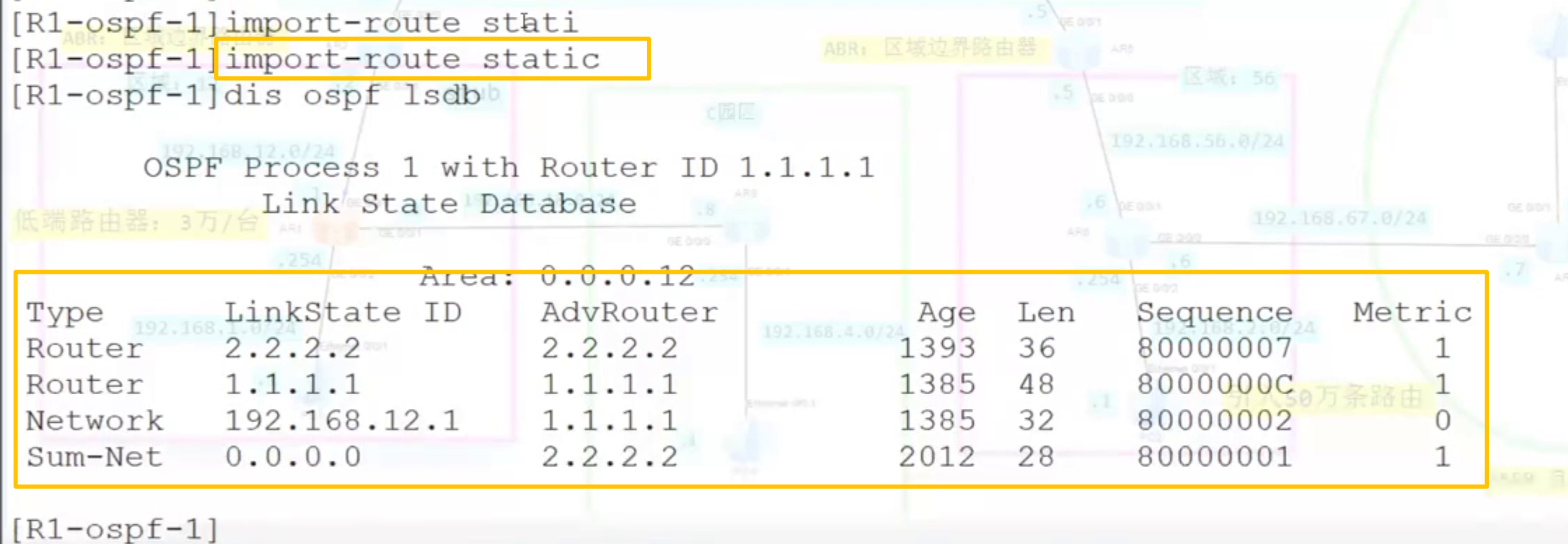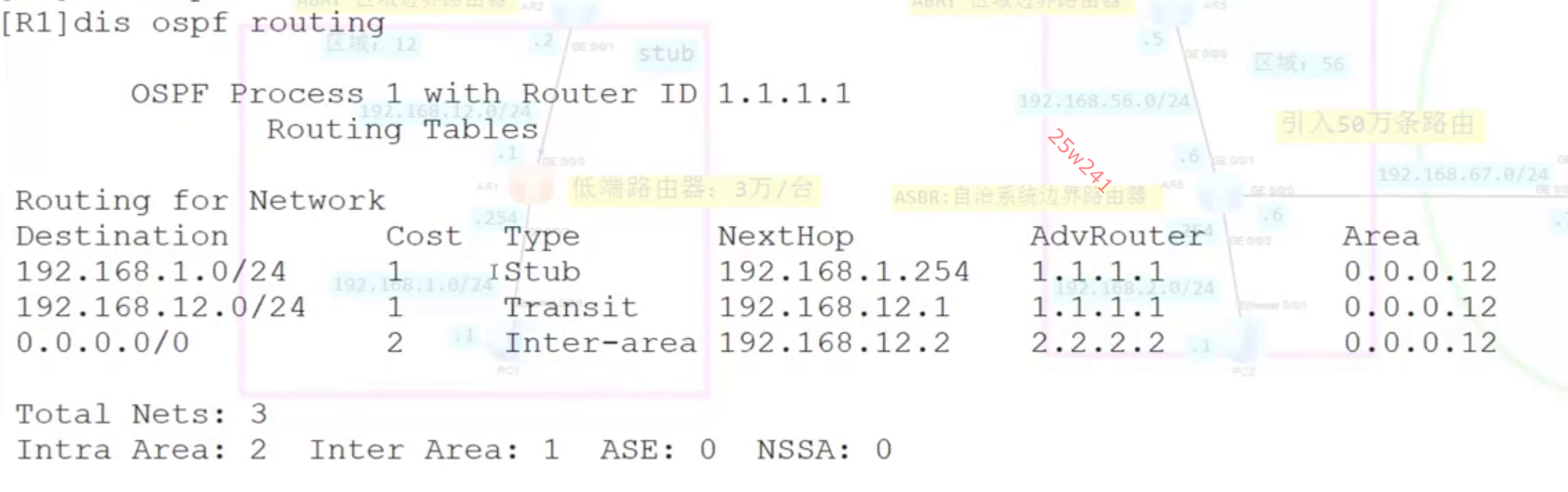 一类、二类LSA是共同算域内路由的,两个一类LSA,一个二类LSA。这三个LSA算出了两天域内路由。