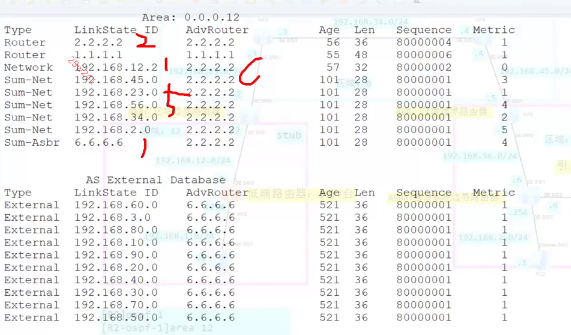 | 外部路由 | 四类、五类LSA | ASBR位置 + 外部网段 |