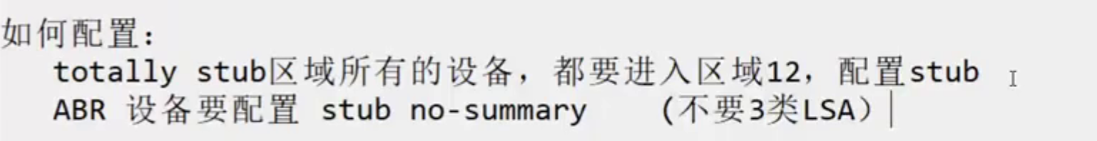 此时,区域内的路由器只知道本区域和一条默认路由 ,对外部世界完全"盲视",配置为在ABR上加 stub no-summary。