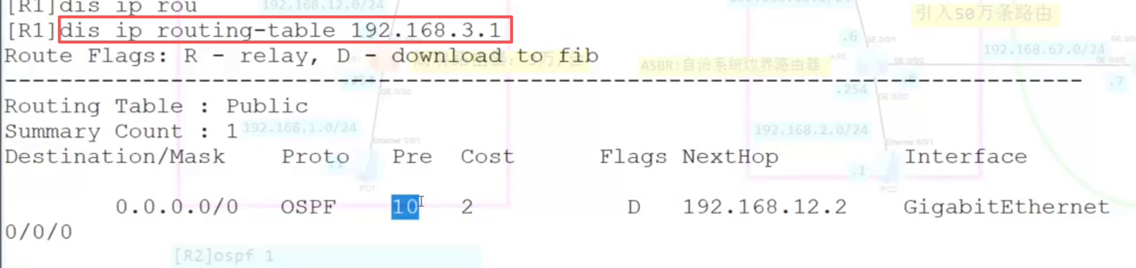 查看ospf路由表