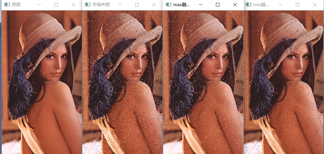 max(img, noisyImg, maxFused); // 保留亮像素,抑制暗噪声(椒噪声)