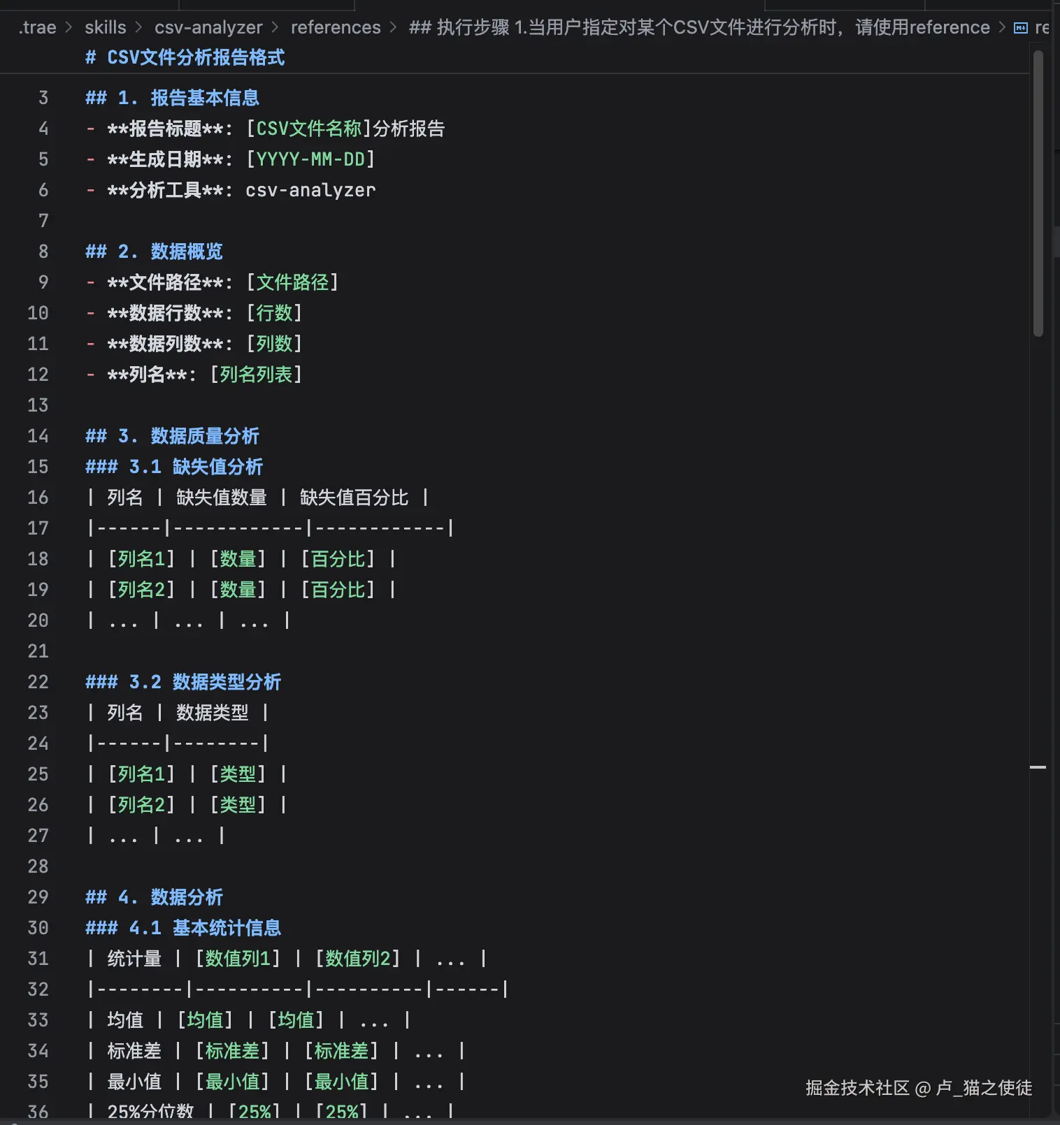 1.创建reference/reportFormmat.md文件,该md文件指定了生成报告的格式: